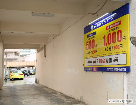 以下にホテル周辺で営業している有料駐車場およびコインパーキングをご案内いたします。駐車場の事情により料金が変動する場合がございます。当ホームページでご案内する料金と異なる場合もございますので、現地で再確認いただくことをおすすめいたします。(2026年3月時点の情報です)